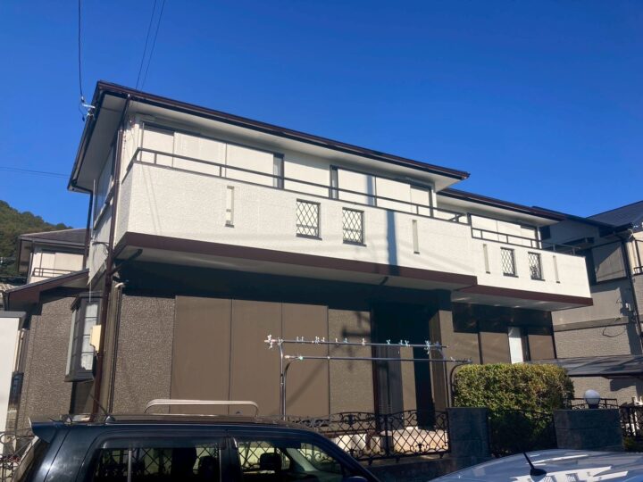 今回は豊川市で、外壁・屋根・付帯部分の塗装工事を行いました。外壁は、もともとの色分けデザインを活かしながら塗り替えを行いました。