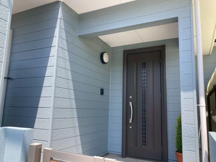 今回の施工では、外壁にセミフロンスーパーマイルドⅡ遮熱(SC-37 ニューグレー)を採用。従来の暖色系から一転、落ち着きのあるグレーカラーへと大胆にイメージチェンジしました。3分艶の上品な質感と相まって、重厚感と高級感を兼ね備えた外観へと生まれ変わっています。